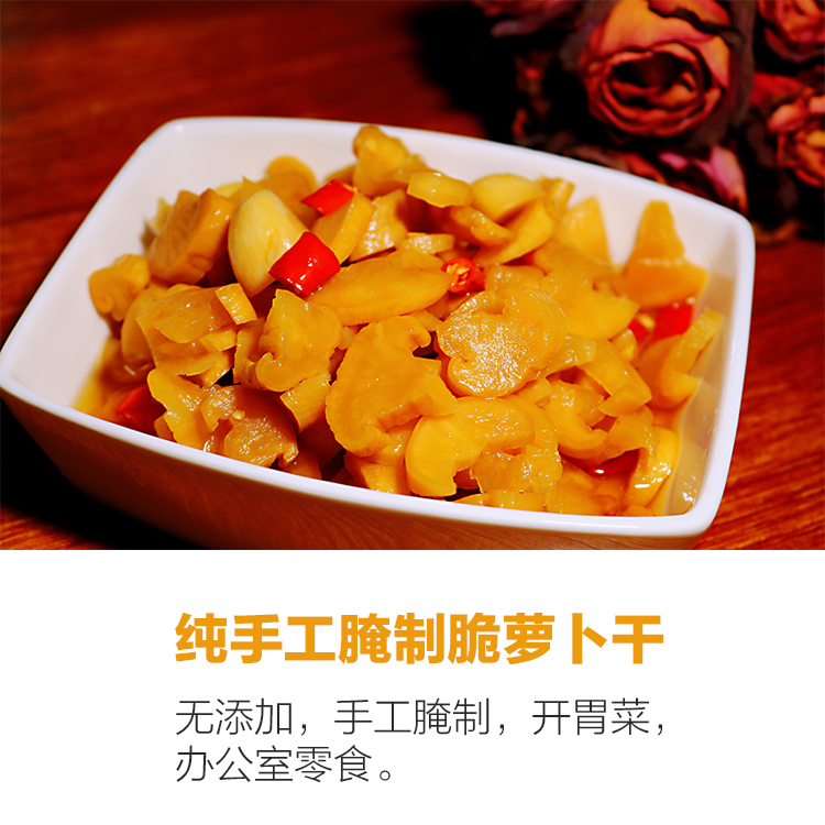 纯手工腌制萝卜干,无添加,脆脆微辣,非常开胃哦!